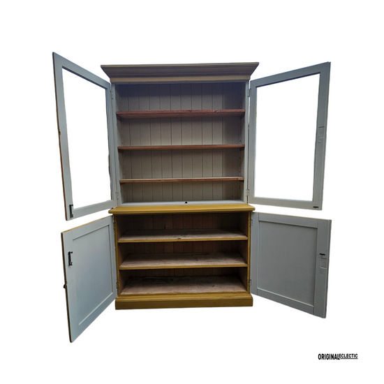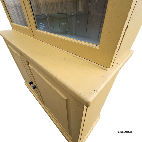 Antique glazed display Cupboard Dresser mustard yellow