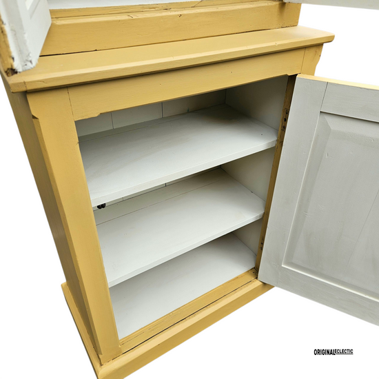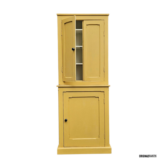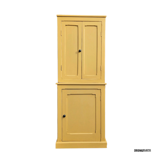 Slim Victorian antique pine housekeepers school Cupboard mustard yellow