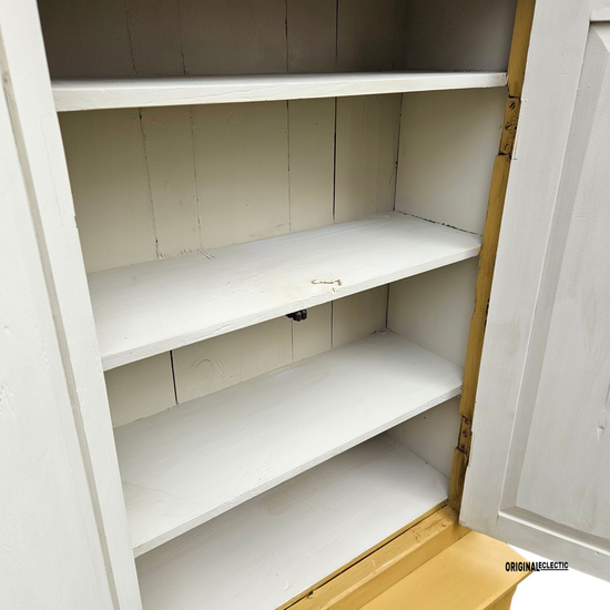 The cupboard is solid and shows all of its age & related marks with lumps and bumps to paintwork which keeps the age and character